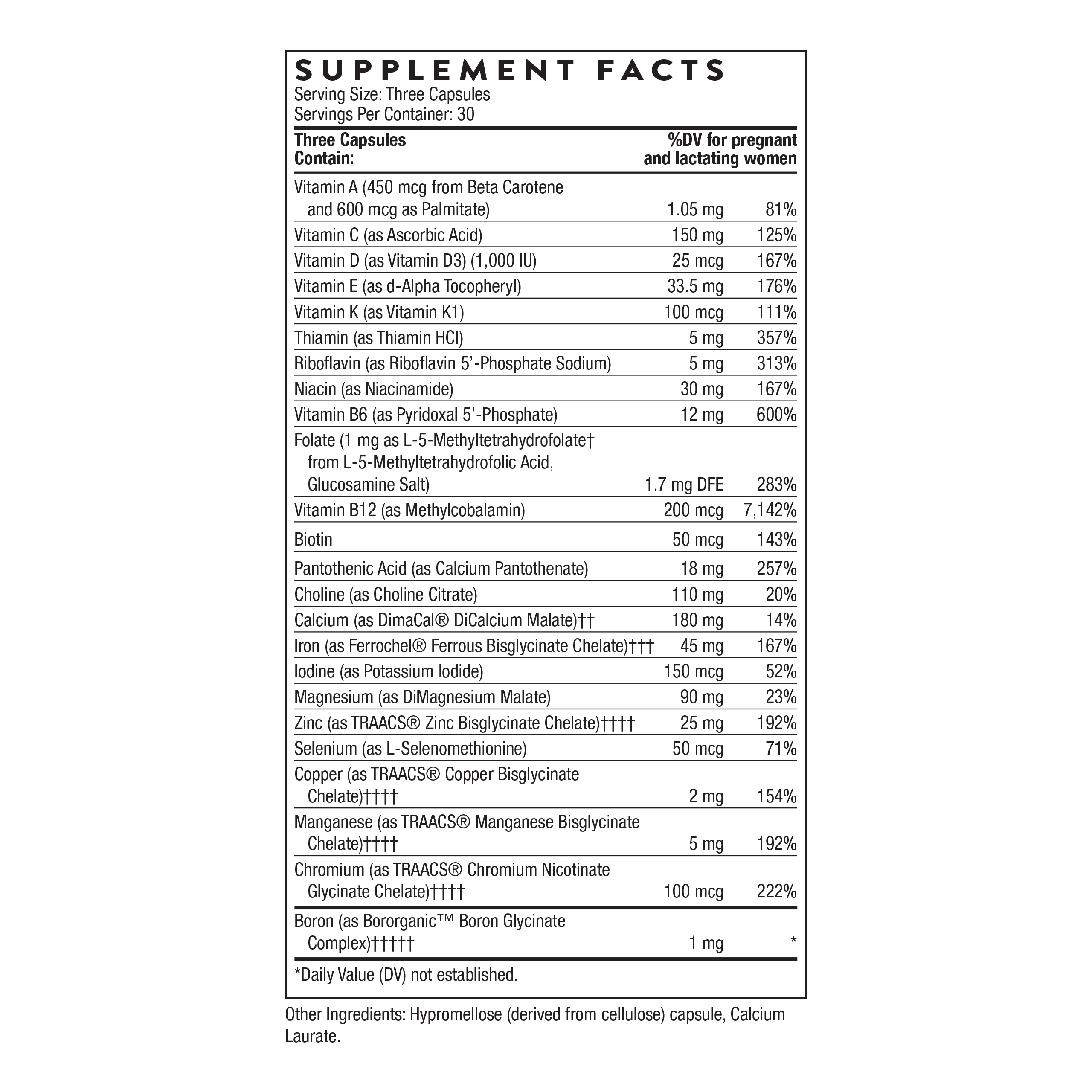 Pre-conception, pregnancy, and nursing are critical times to optimize a mother's health and nutrition, which is important for both for mom and baby. Overall nutritional and caloric needs greatly increase during this time. However, it is often difficult for a woman to fulfill her daily nutrient needs through diet alone.